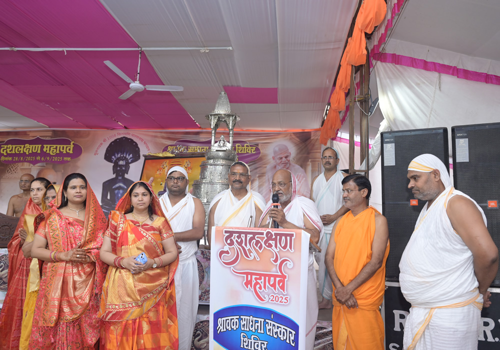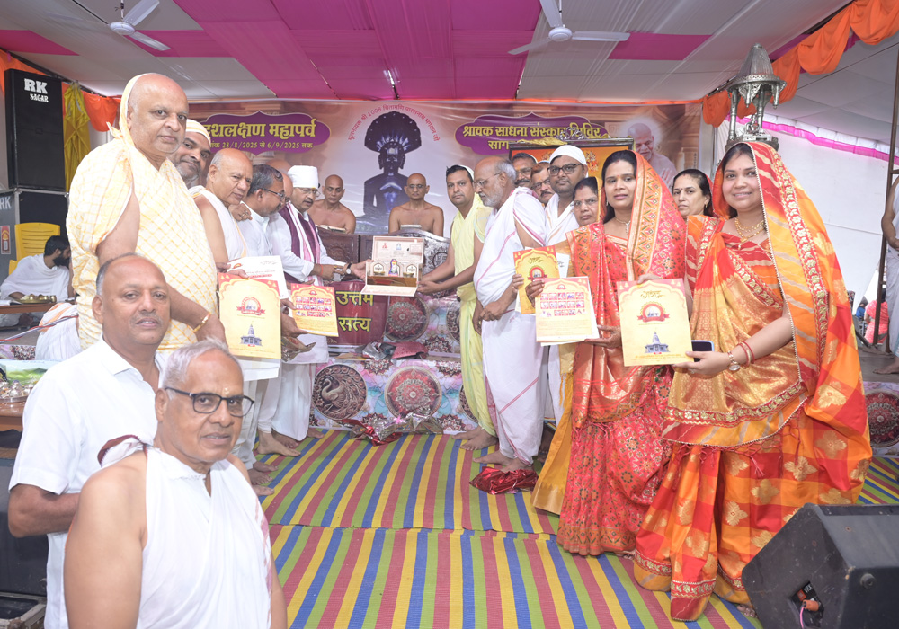 मंगल आशीर्वाद परम पूज्य सारस्वताचार्य 108 देवनंदी जी महाराज मंगल सानिध्य पट्टाचार्य 108 श्री विशुद्ध सागर जी महाराज ससंघ